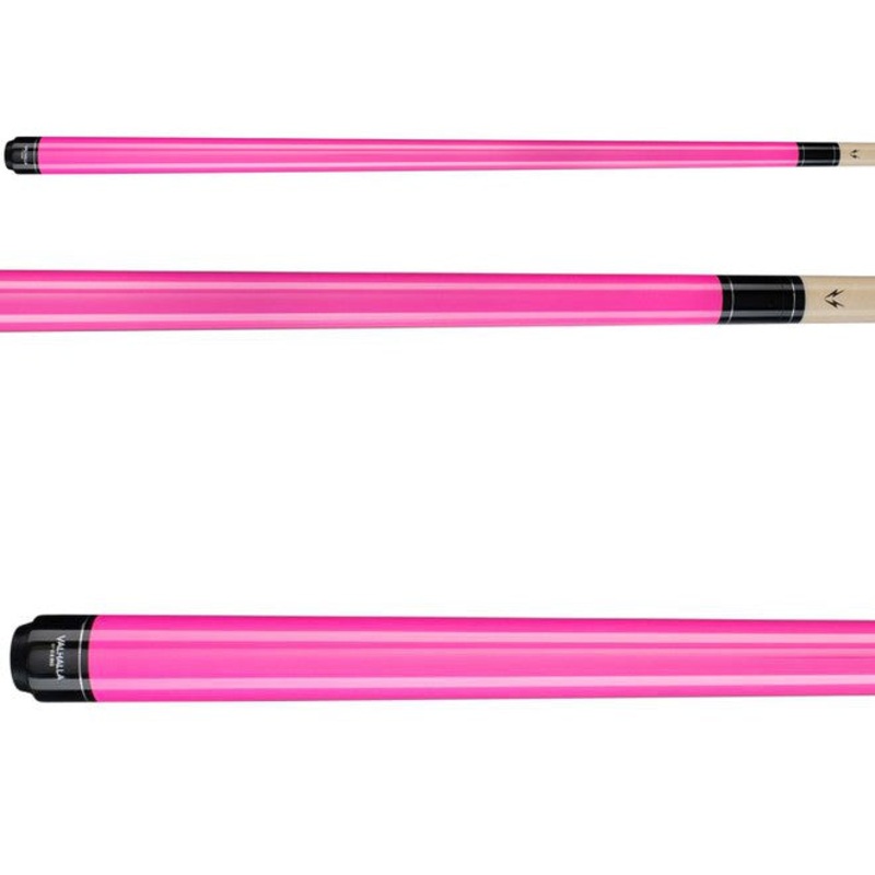 The Valhalla VA106 is built with Hard Rock Maple and features a Ultra Pink Opaque Stain. VA106 has a Premium Leather tip and High Impact Resin ferrule. All Valhalla cues come with a LIFETIME WARRANTY against manufacturing defects, including warpage.