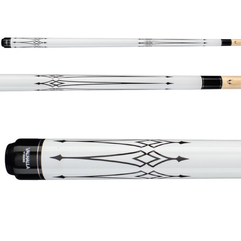 The Valhalla VA221 is a simple yet sharp design. This no-wrap design features a Hard Rock Maple forearm with white and black overlay designs. Three Nickel rings adorn this cue giving it a polished finish. The shaft is made of Hard Rock Maple and comes equipped with a Premium leather tip. All Valhalla cues come with a LIFETIME WARRANTY against manufacturing defects, including warpage.